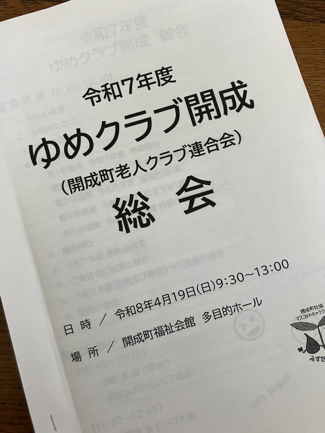 4月19日 開成町福祉会館で開催された“ゆめクラブ開成“の令和7年度の総会に出席しました。