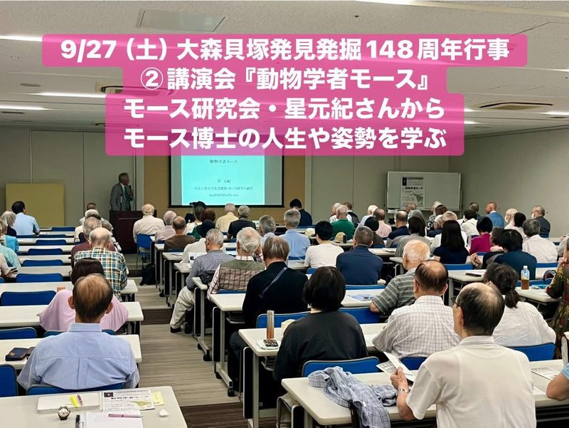 9月27日(土)、#大森貝塚発見発掘148周年 行事の日1️⃣4️⃣8️⃣ 私も会員である #東京都大森貝塚保存会 の主催で、午後は入新井集会室にて講演会でした。会場いっぱいの120名ほどの参加がありました。