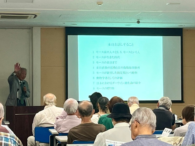 講師は、東京工業大学(現・東京科学大学)名誉教授であり、モース研究会理事である #星元紀(ほしもとのり)さん。毎年10月に開催される江の島モース祭にあたっては、モースが設けた #江の島臨海実験所 の推定地にてご説明をいただいてきました。