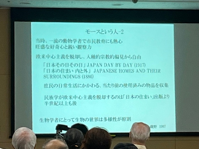 でも、この日、一番印象に残ったのは、モースが一流の動物学者であると同時に、市民教育にも熱心であったとの話。そして、欧米中心主義を脱却し、人種的宗教的偏見から自由であったとの話でした。