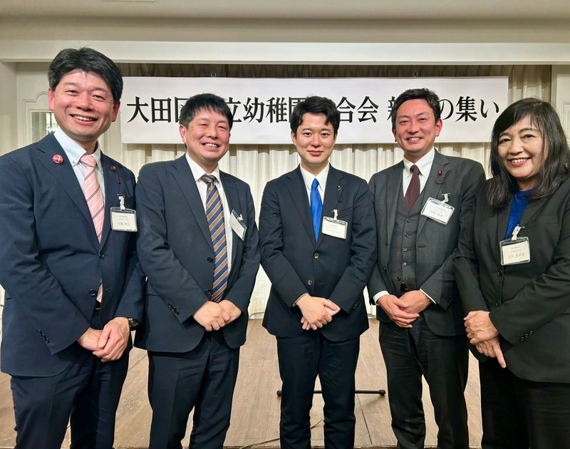 大田区内のほとんどの議員(国・都・区)が出席する会。園児数が減っているという私立幼稚園の厳しい状況を伺いました。また、4月から国の「こども誰でも通園制度」が始まるものの、園舎や園庭が面積要件を満たせない(都会なので広くない)ため利用できない園が多いが、大田区独自に園児以外のこどもも受け入れられる補助事業が考案されていることへの期待の声も伺いました。