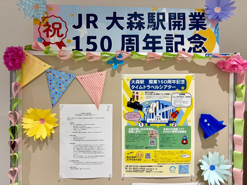 なお、ワークでも出た、#大森駅開業150周年 に連動する企画については、1階のオープンスペースに掲示がありました。「大森の思い出の写真を募集します!」「未来の大森駅って? わくわく!空想お絵描き」の2つの募集が、5月15日(金)まで行われています。ぜひご応募ください。