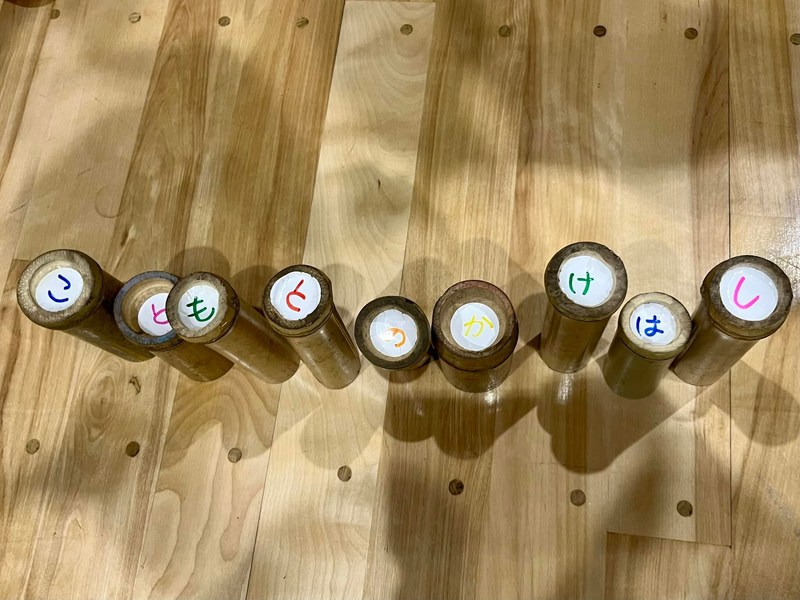 ゴールとなった、めぐろ学校サポートセンターで、各チームが集めてきた竹筒に書かれた文字をならべると「こどもたちとのかけはし」💡