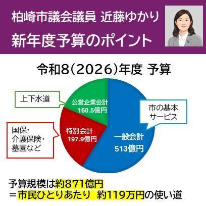 ホーム>政党・政治家>近藤 ゆかり (コンドウ ユカリ)>【新年度予算】柏崎市の令和8(2026)年度予算は、約871億円。