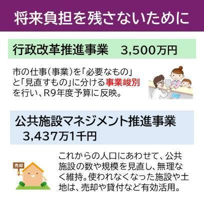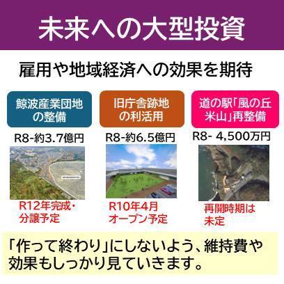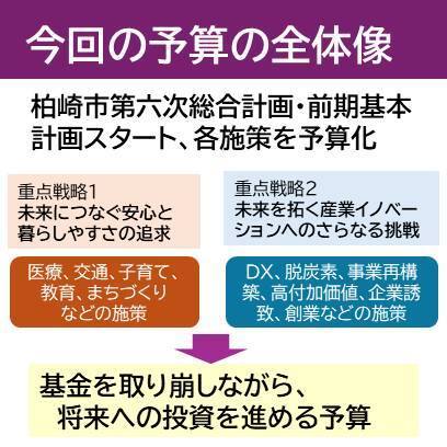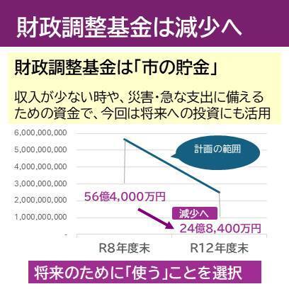 基金(市の貯金)を使いながら、未来への投資を進める予算です。