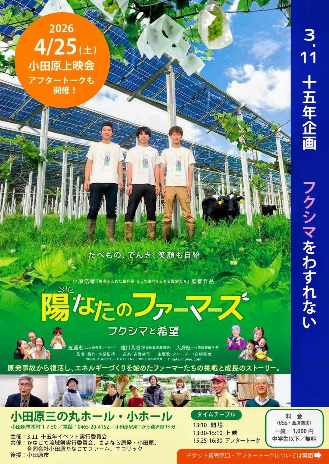 今日は4/25(土)に小田原三の丸ホールで開催される「陽なたのファーマーズ」小田原上映会とアフタートークのご紹介です。