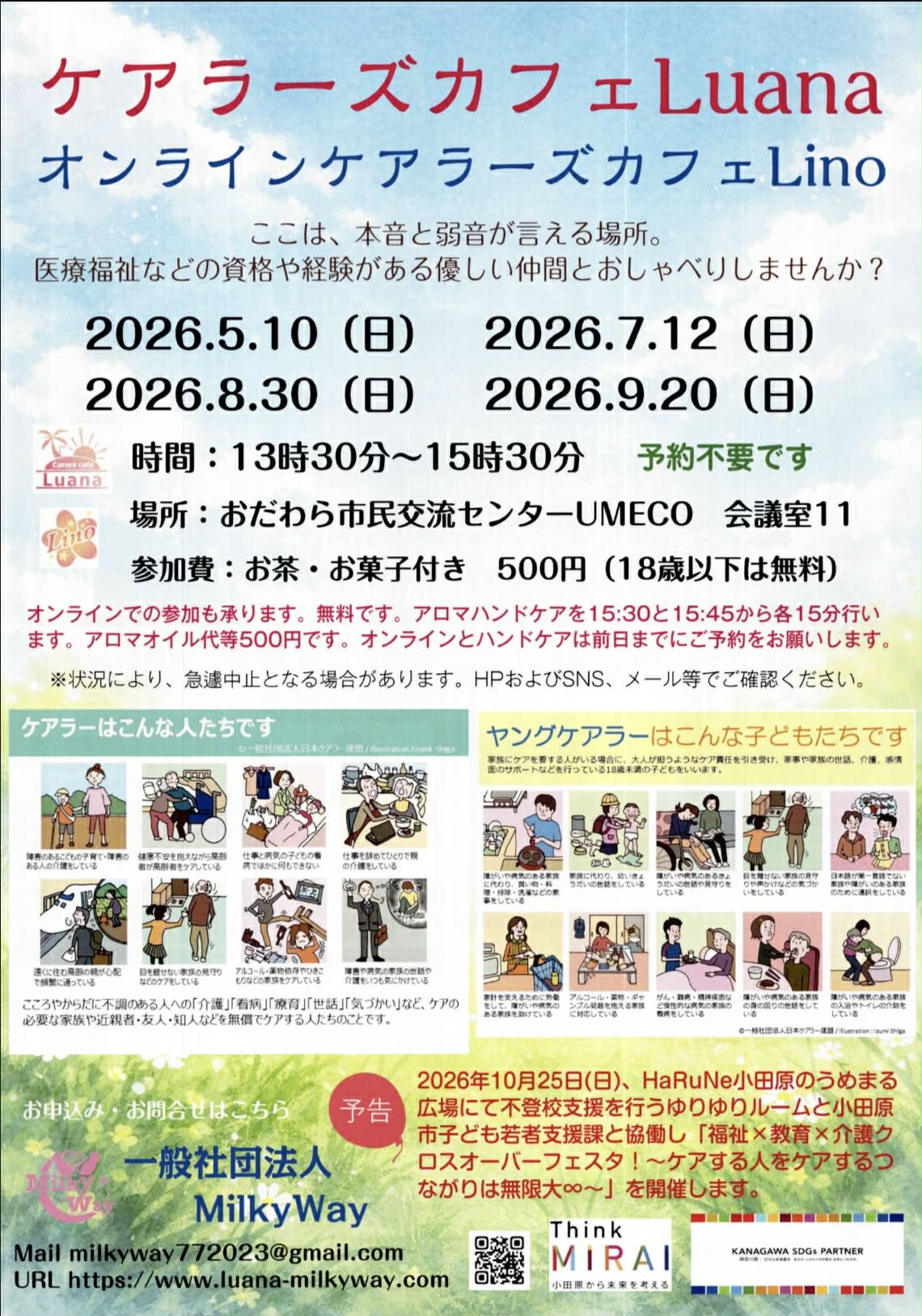 主催者の方よりケアラーズカフェ Luana/オンラインケアラーズカフェ Lino 開催のご連絡を頂きました。