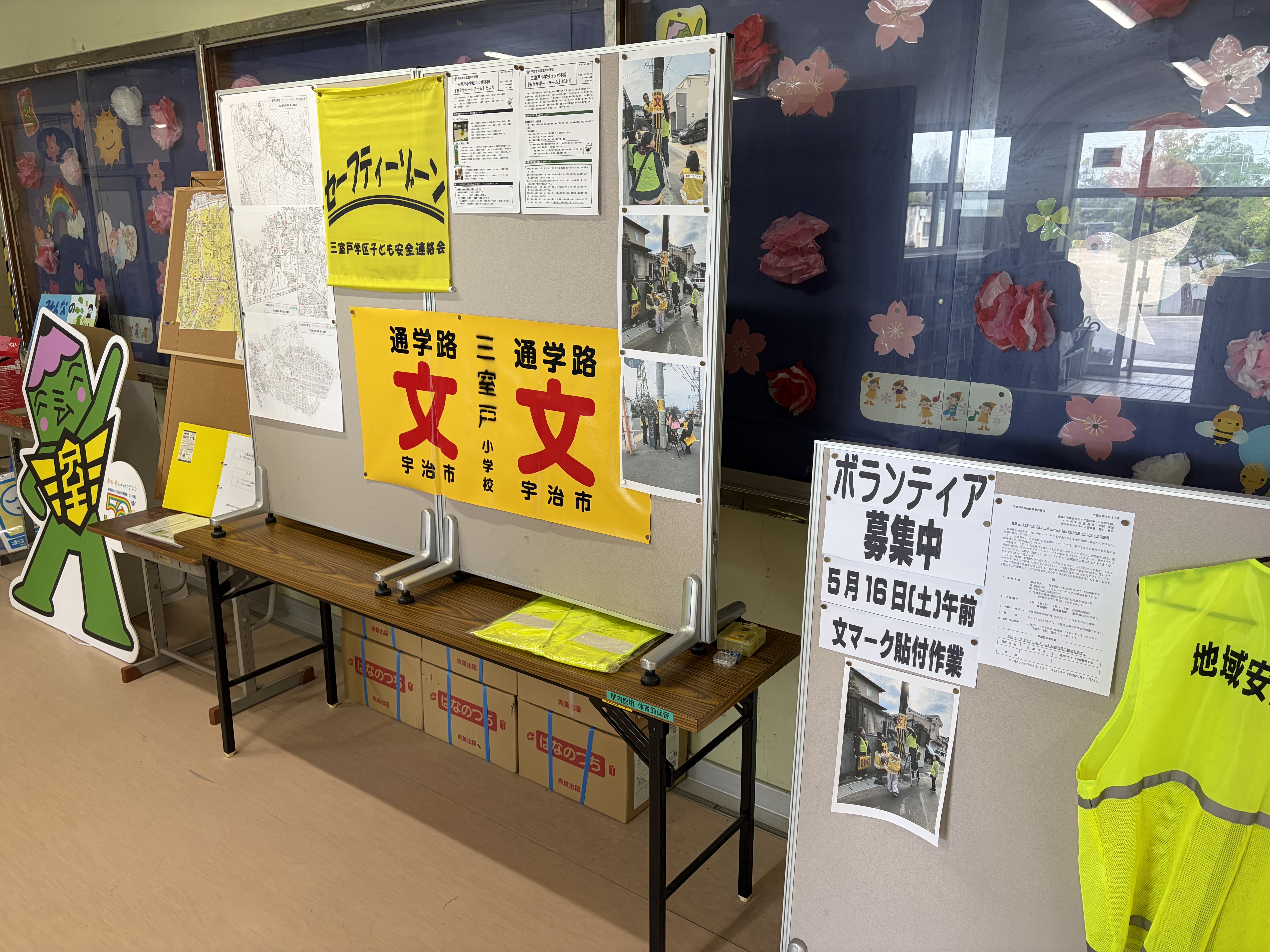 今朝は地域学校協働活動の一環で、私も参加をしております「安全サポートチーム」の取り組みを、参観日にあわせて保護者の皆さんに広報しました。