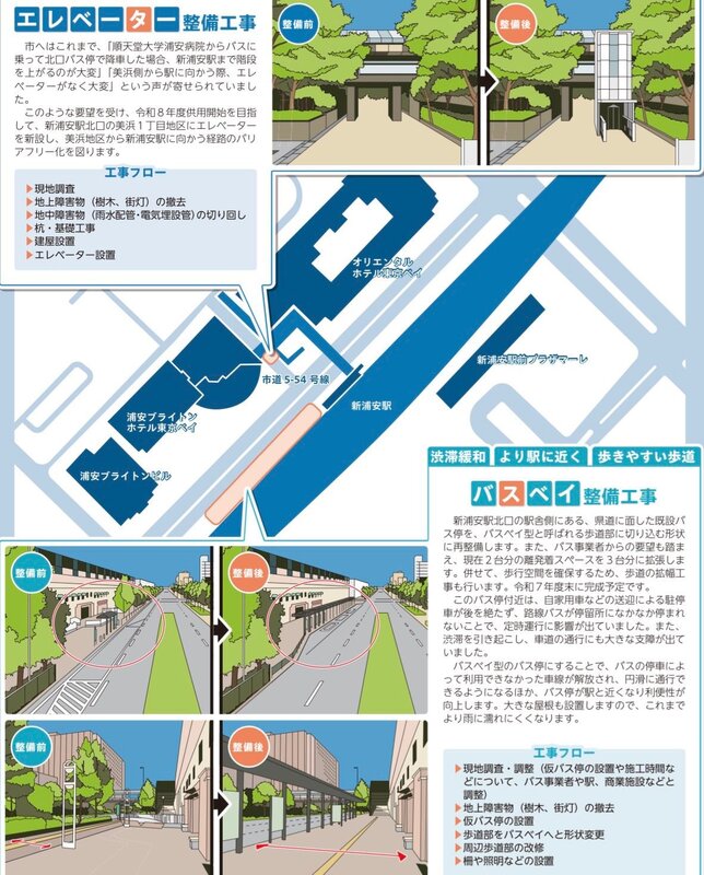 今朝は新浦安駅前に立ちました。 北口のバスベイの工事が進んでいます。 市の広報では令和7年度末に完成予定と記されていましたが、入札不調でしょうか。 県道若潮通りの混雑緩和につながることを期待します。
