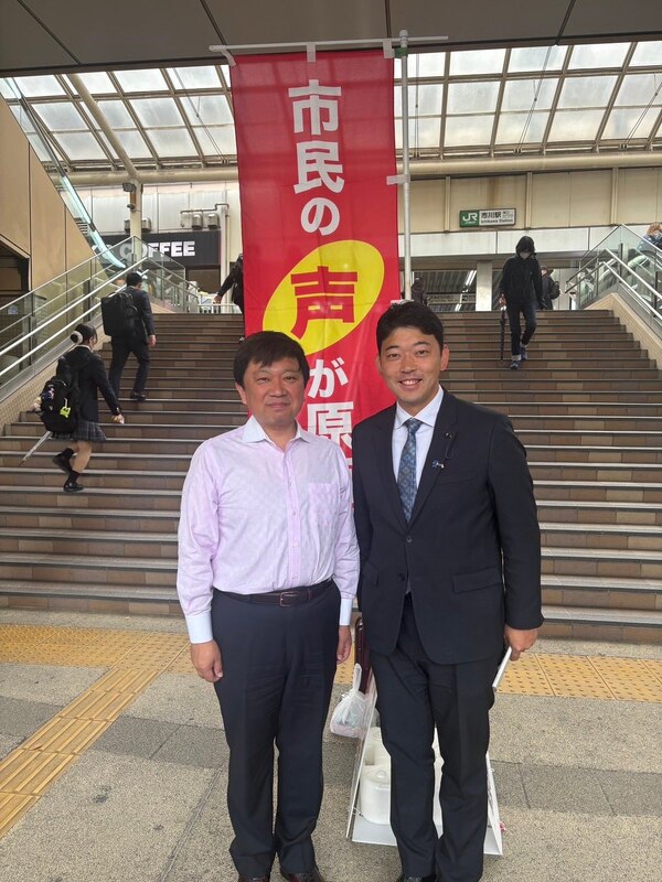 その後、市川駅南口で駅頭活動をされていた坂下しげき県議にご挨拶しました。