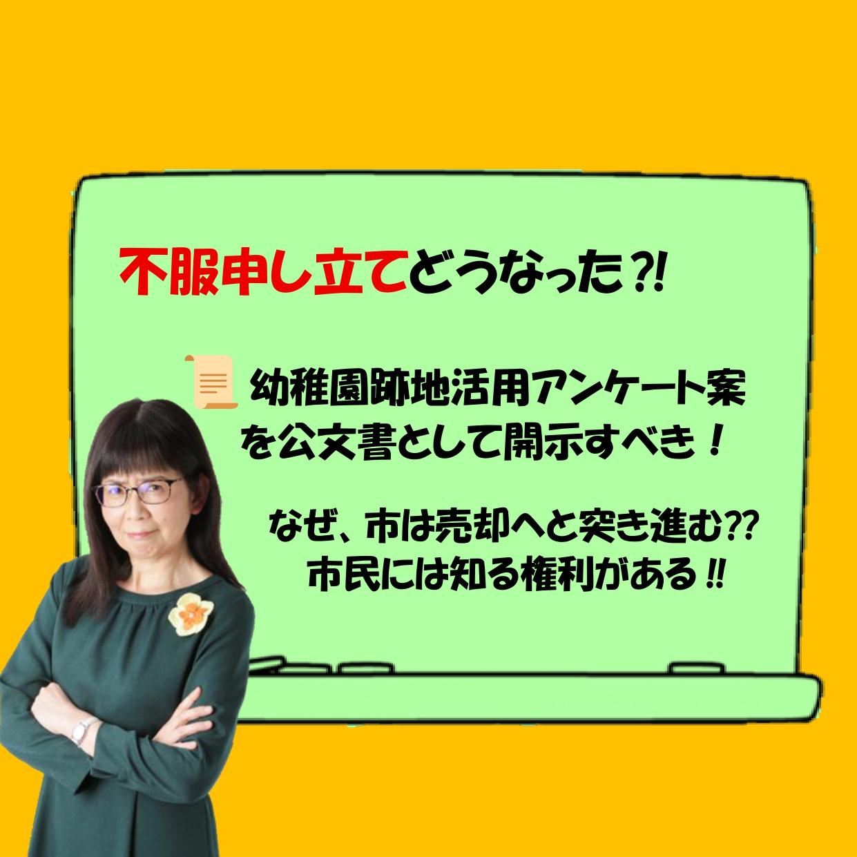 令和7年12月12日の一般質問(山本しのぶ)の中で、こども未来部長が説明した、市が作成し、地域長に渡されたアンケート用紙(案)についての公文書開示請求に対する「公文書不開示決定」