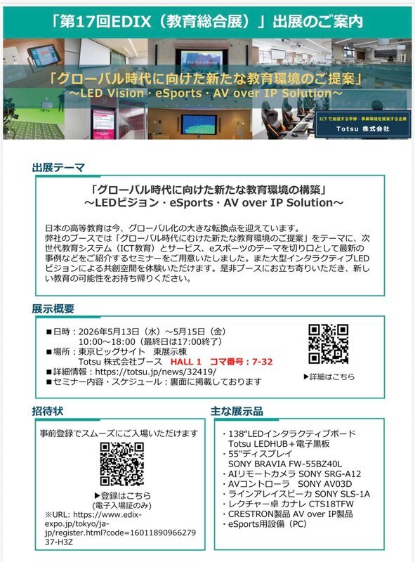 【昭島市】第17回EDIX(教育総合展)のTotsu株式会社(HALL1コマ番号7-32)にて...