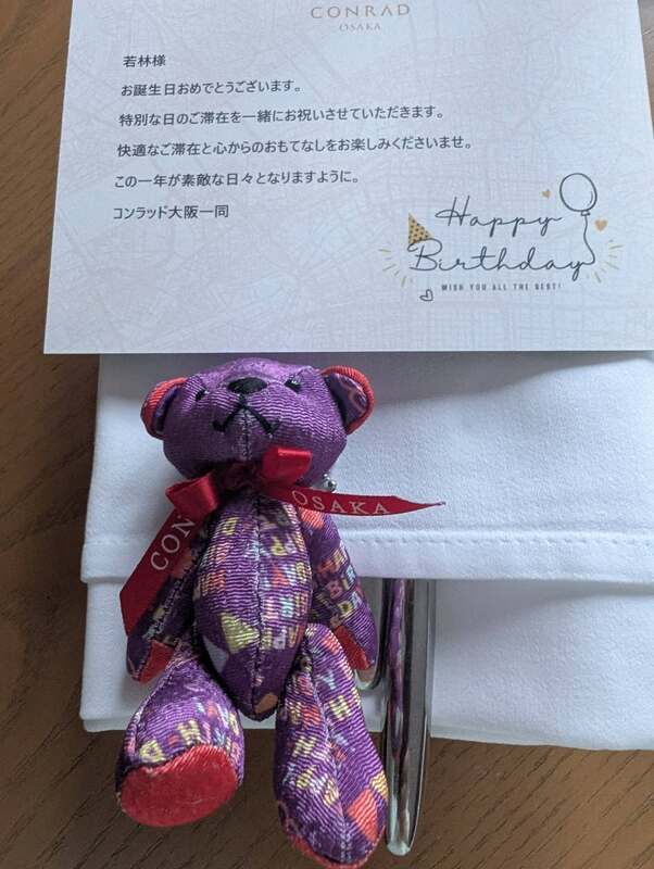 私のお誕生日は、母親接待デー。今年は、1年前からポイントを貯めたり、計画的に準備を進めていたコンラッド大阪へ。