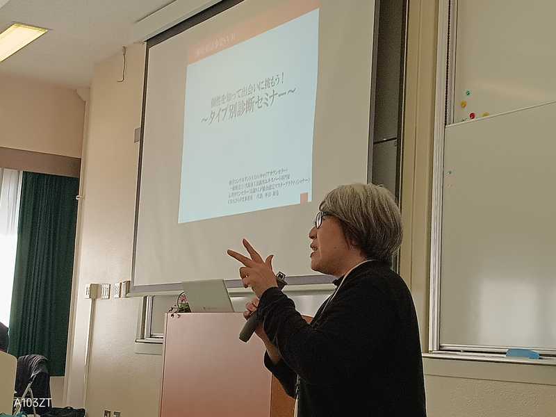 まず最初に平山展也先生による個性心理学セミナーでは、いわゆる動物占いを使って、それぞれの個性を知って、いかに人間関係を上手くやっていけるかについての講演がありました。参加者全員の分析シートも出していただき、グループワークもあって、参加者も盛り上がっていました。