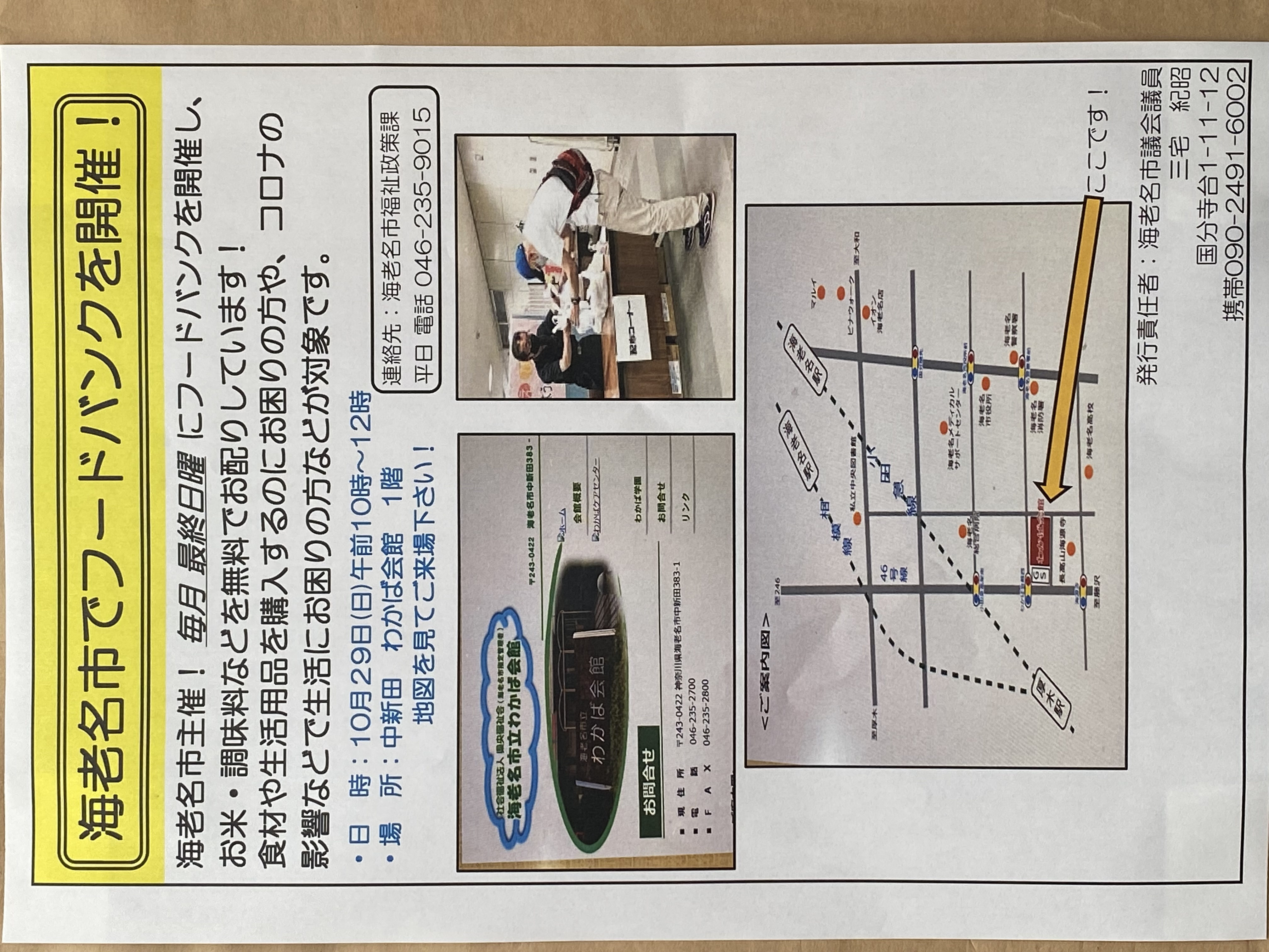ホーム>政党・政治家>三宅 紀昭 (ミヤケ ノリアキ)>海老名市 フードバンクえびな 10月 開催 食材 生活用品