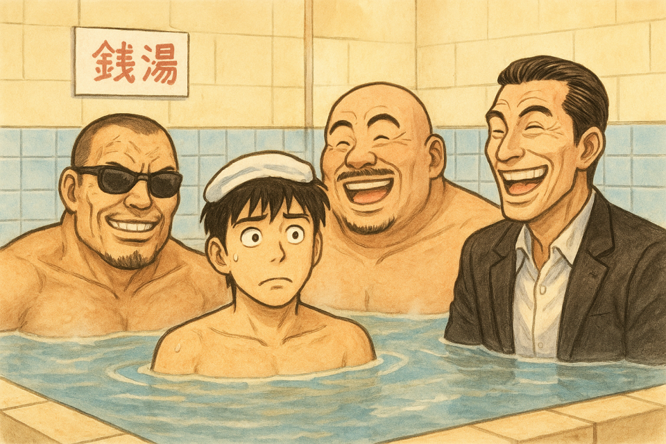 アパートから自転車で東に少し行ったところに市営の芦乃湯という銭湯があった。今では銭湯も発達しレジャー施設化しているが、当時の芦乃湯はまさしく共同浴場だったので生活感が滲み出ていた。かぐや姫の歌う〝神田川″の世界そのままである。俺はそこに毎日のように通っていた。銭湯の利用者には全身に和彫りの刺青が入った者も多くいた。毎日のように通っていると馴染みとなり、そんな刺青さんとも徐々に仲良くなってしまう。最初は目を背けていたが毎日のように同じ刺青を見せられていると慣れてしまうのだ。