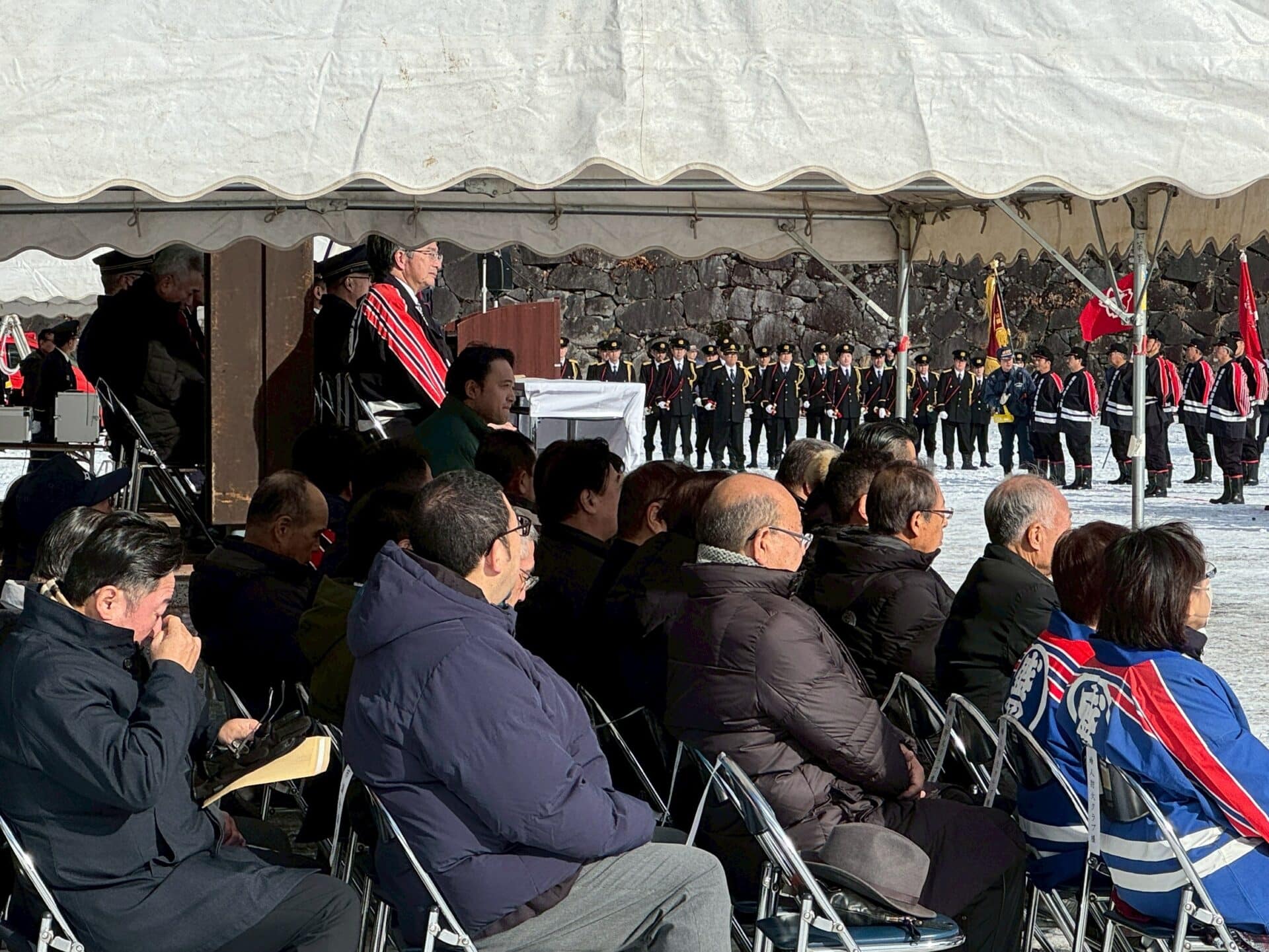 令和8年 盛岡市消防出初式に出席しました。比較的暖かく、快晴の下での挙行となりました。消防団の皆様の日頃の活動に感謝するとともに、今年一年、火災や災害のない、穏やかな日々が続くことを心から願っています。