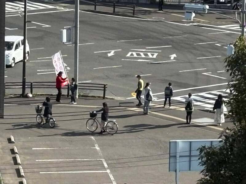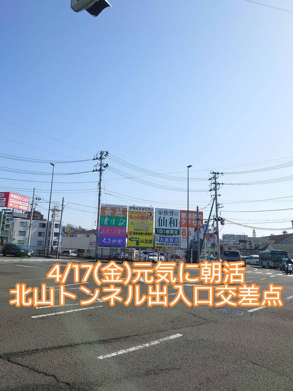 4月17日(金) 北山トンネル出入口付近の交差点で街頭活動。そして交通安全誘導の皆さまと交流。