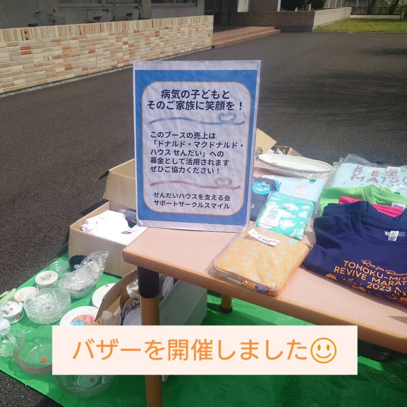 街頭活動後はドナルド・マクドナルド・ハウス仙台のボランティア交流会に参加。テント設営やバザー準備後にパトラン。