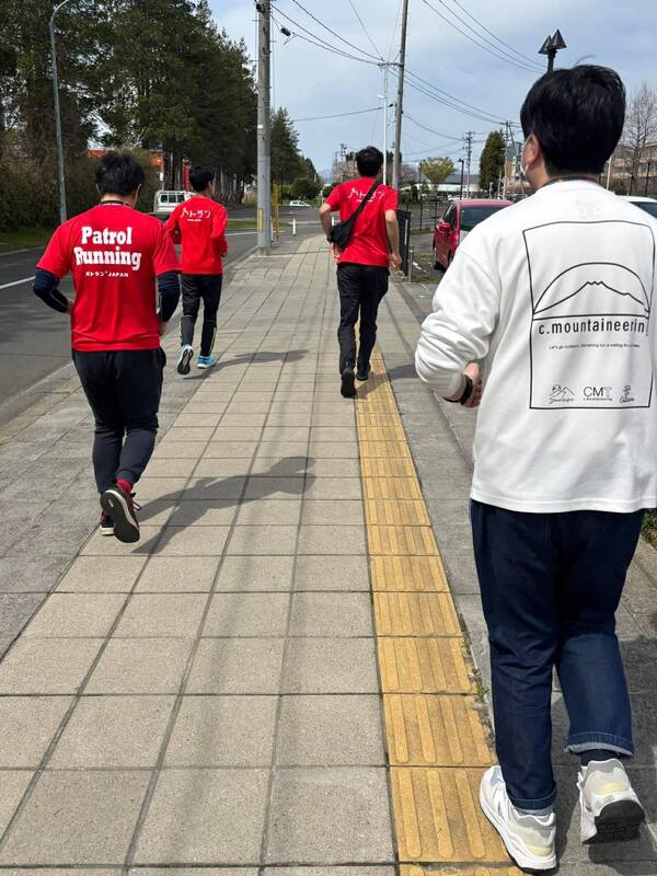 車内から手を振っていただいたり、通勤の方々、部活に向かう学生さんと挨拶。