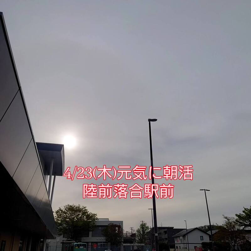 4月23日(木) 陸前落合駅前にて朝活。通勤される方から国政や県政、市政に関するご意見を聴く貴重な機会でした。久々に会う方もいて元気そうで安心しました。