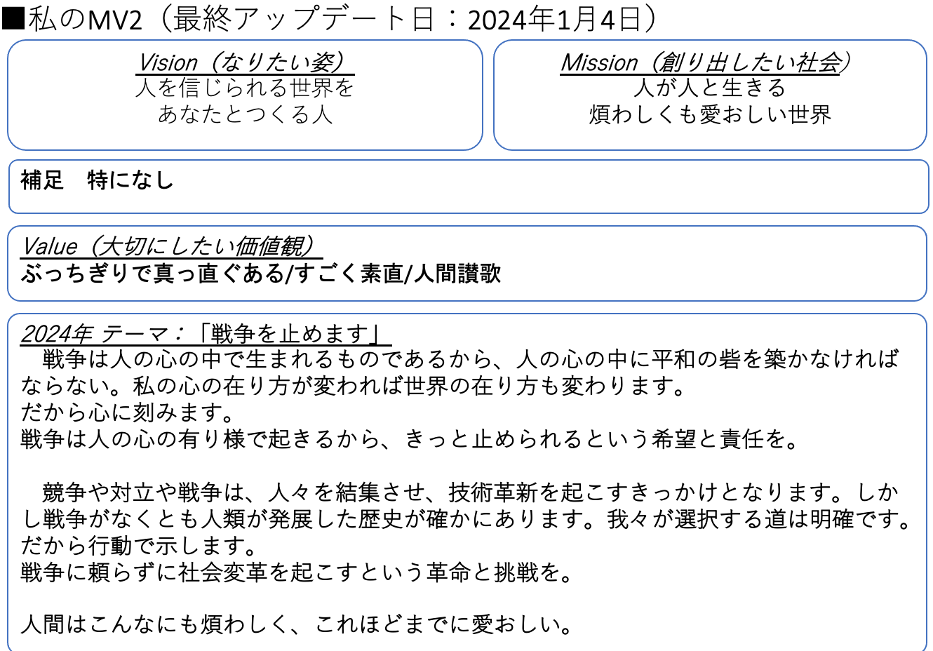 ということでこのようMVVとしました。3年前のものを載せておきます。