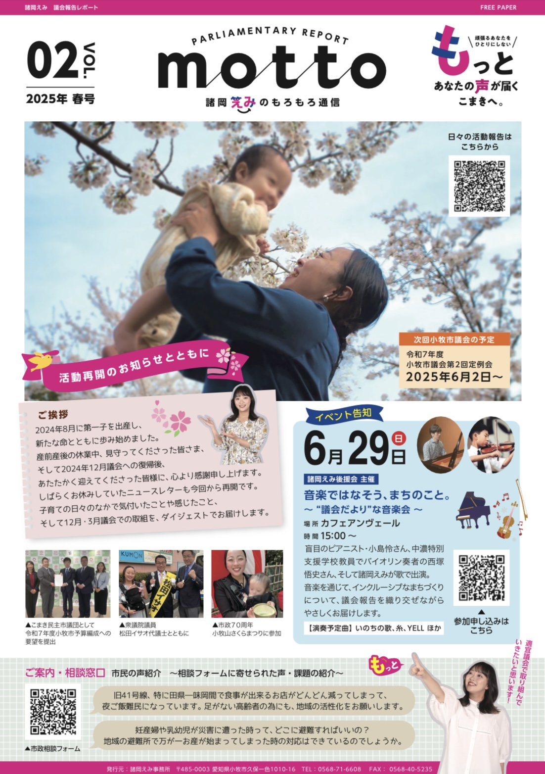 ホーム>政党・政治家>諸岡 えみ (モロオカ エミ)>「motto」諸岡えみのもろもろ通信2025年春号完成。