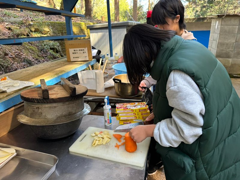参加者みんなで分担し、食材を切ったり