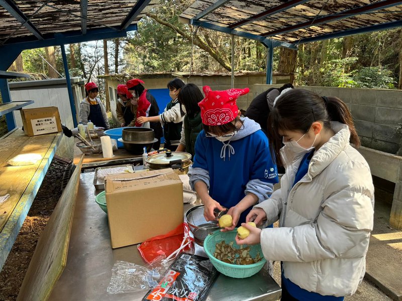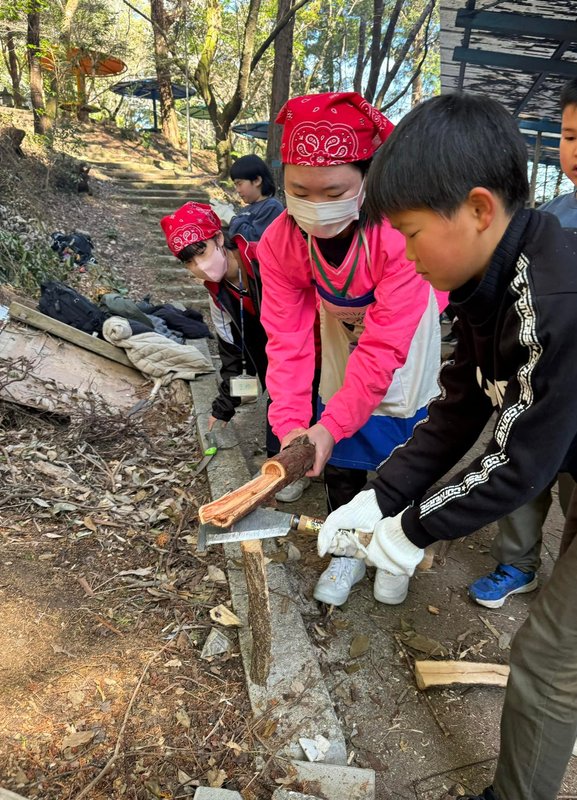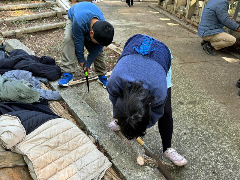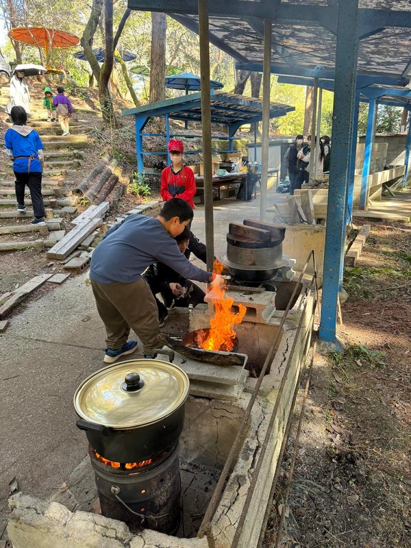 焚き木を作ったり、火をおこしてお釜で