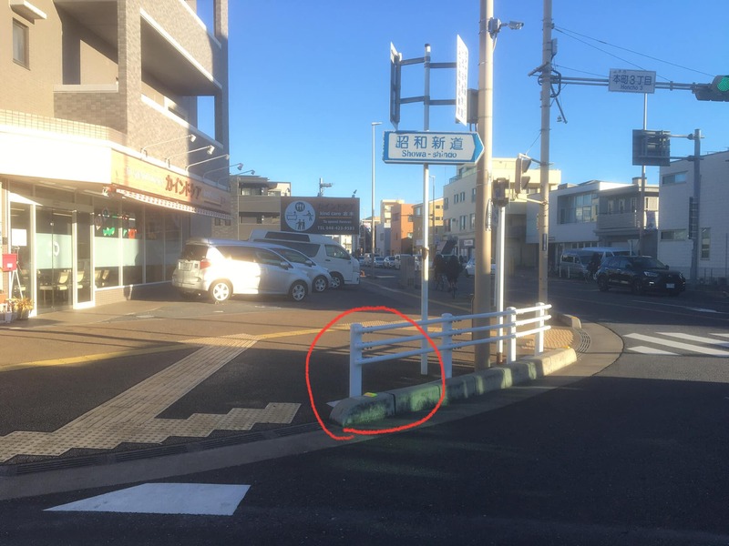 今朝も緑のおじさん登校見守り活動を行っておりますと、バス通りの縁石 反射板が破損しはずれてしまっていましたので、