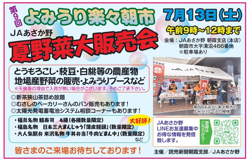 7/13(土)開催の「よみうり楽々朝市」や7/20(土)・21(日)のアロハフェスタ2024も要チェックです!