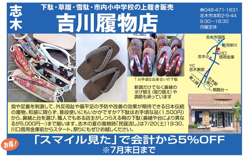 また、今号には志木のいろは商店会の「吉川履物店」も登場しています(^^♪