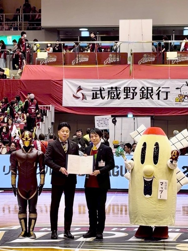 2月14日サンロッカーズ渋谷戦のハーフタイムに、越谷アルファーズとの「+α(プラスアルファ)協定」締結式を行いました✨