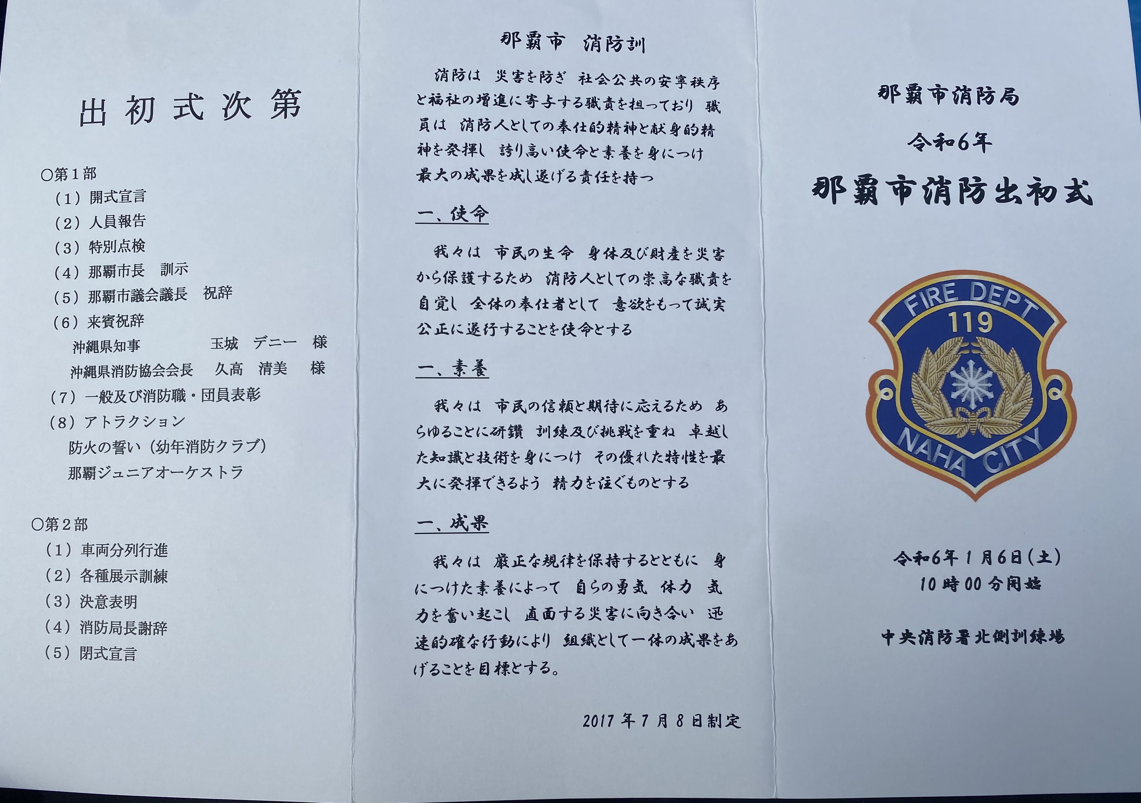 沖縄県那覇市銘苅にある中央消防署にて出初式が行われました。