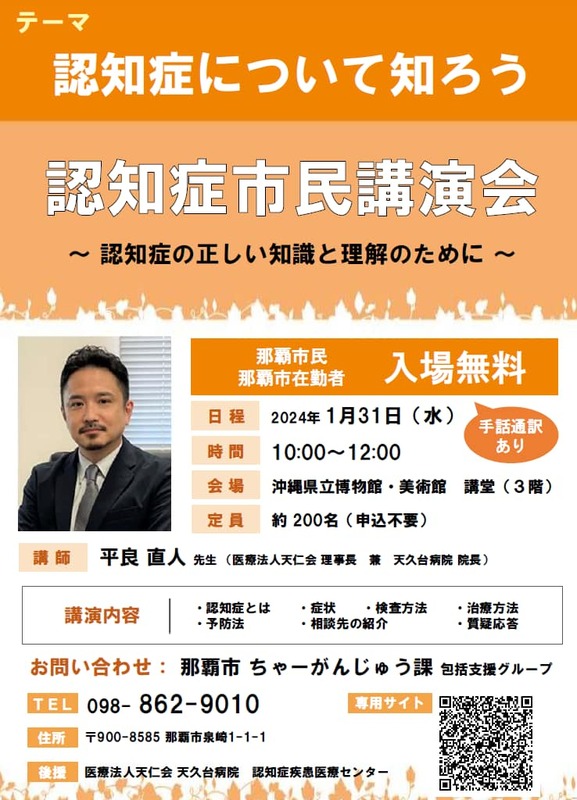 那覇市認知症市民講演会を開催のお知らせ✨沖縄県那覇市。