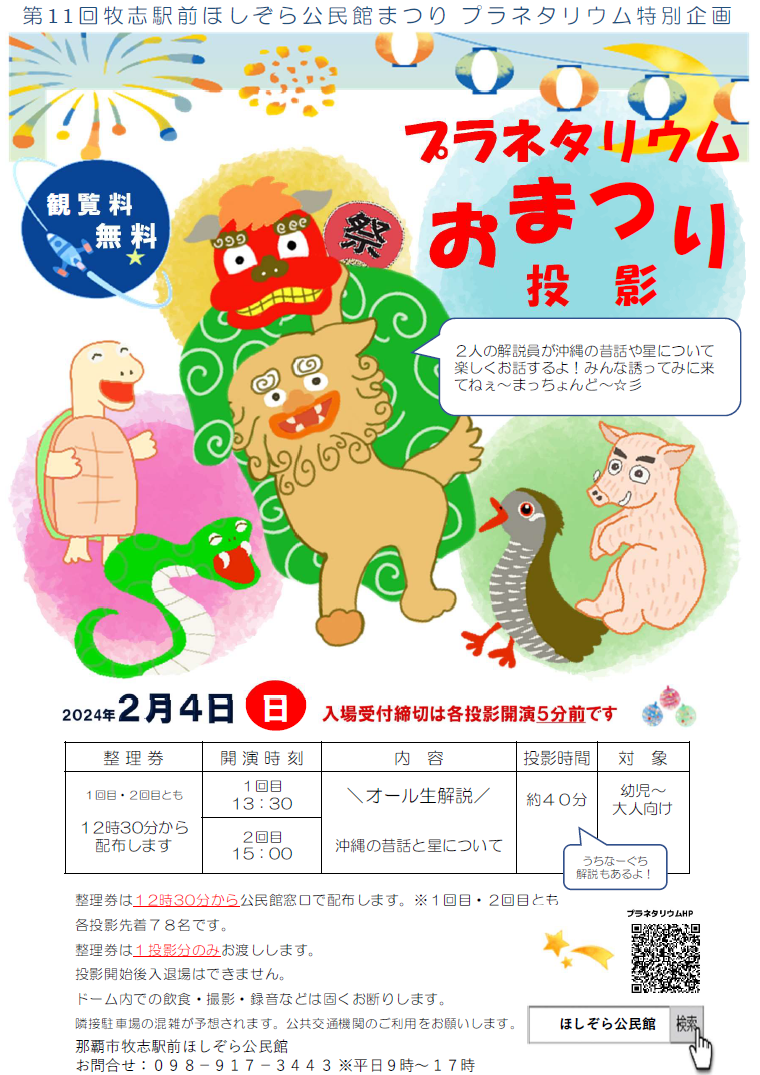 第11回牧志駅前ほしぞら公民館まつりに併せて「プラネタリウムおまつり投影」を行います❣️