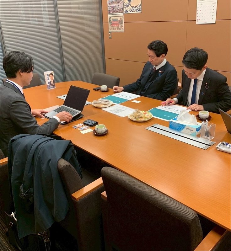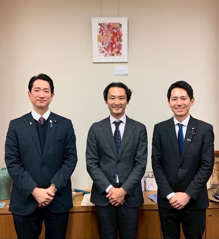 ホーム>政党・政治家>鳩山 紀一郎 (ハトヤマ キイチロウ)>鳩山事務所を訪問くださったお客様:株式会社LUUP渉外部長の池上翔さん(と奥村よしひろ議員)。