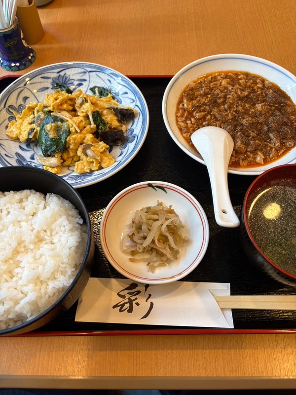 彩芳さんには久しぶりに伺いました。いただいたのは、きのこと卵の炒め物と麻婆豆腐のセット。どちらも丁寧な味付けで、とても美味しくいただきました。ポスターも剥がれてしまっていたところ、再度貼らせていただき、感謝です🙏