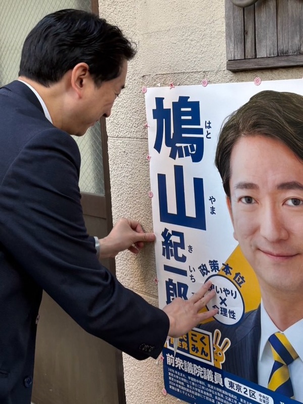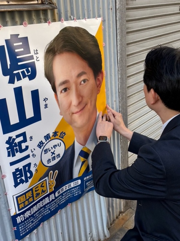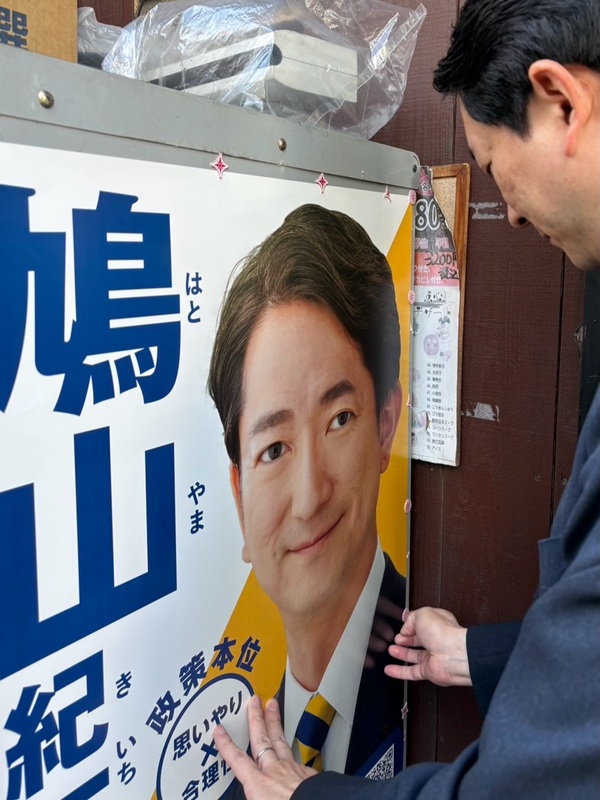 ホーム>政党・政治家>鳩山 紀一郎 (ハトヤマ キイチロウ)>昨日はお昼を銀座七丁目の「太常(だいつね)うどん」さんでいただいた後、ポスターのメンテナンスへ。