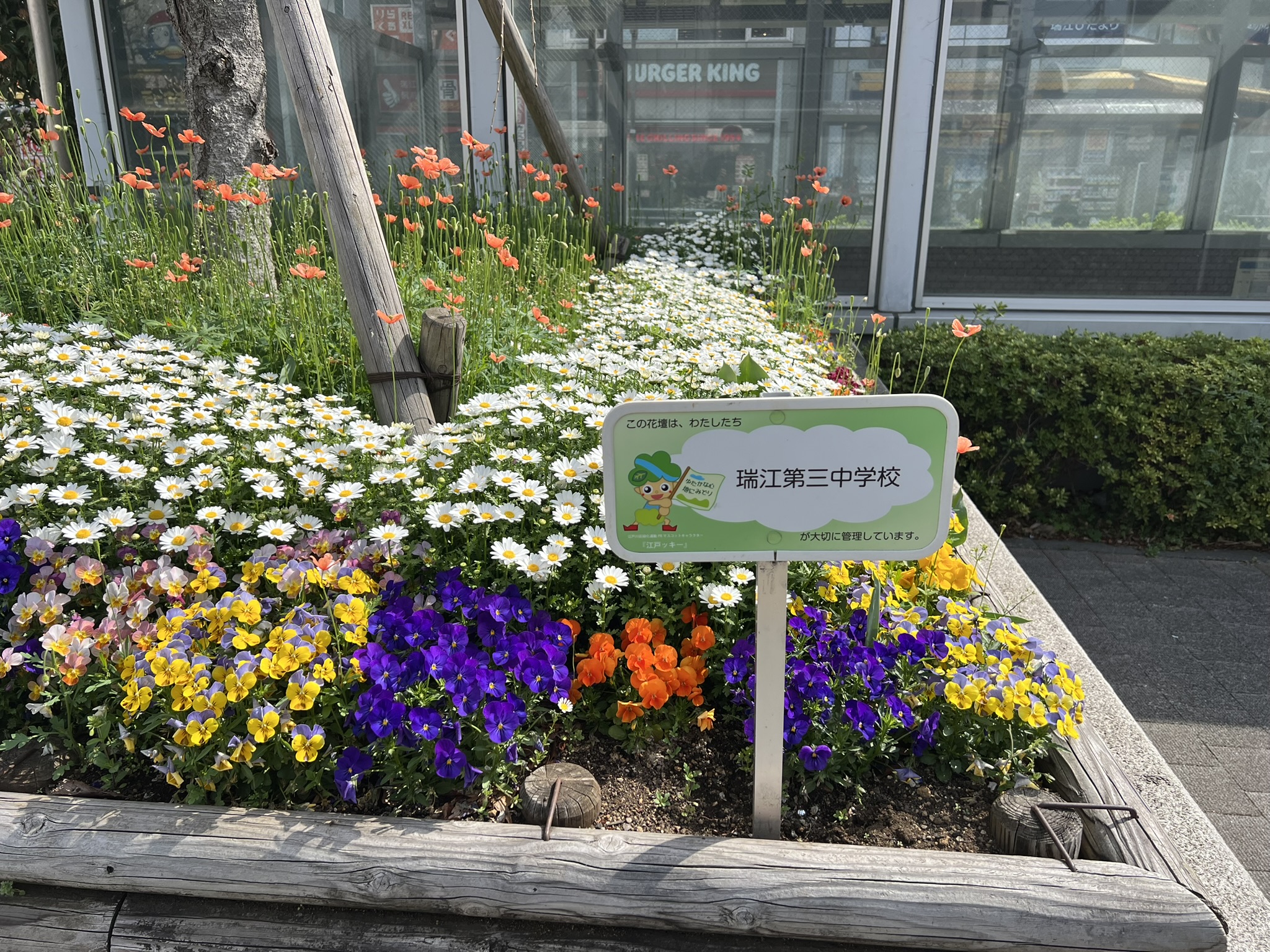 (瑞江三中の皆さんが管理してくれている瑞江駅前の花壇)