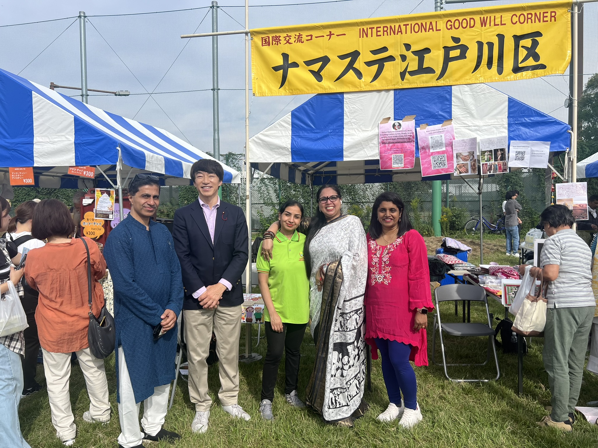 また、国際交流コーナーでは、江戸川区のインド人との国際交流のお手伝いをしてくださっている「ナマステ江戸川区」のテントにも立ち寄りました。活気ある雰囲気の中で異文化に触れることができ、多文化共生が進む江戸川区らしい光景を見ることができました。