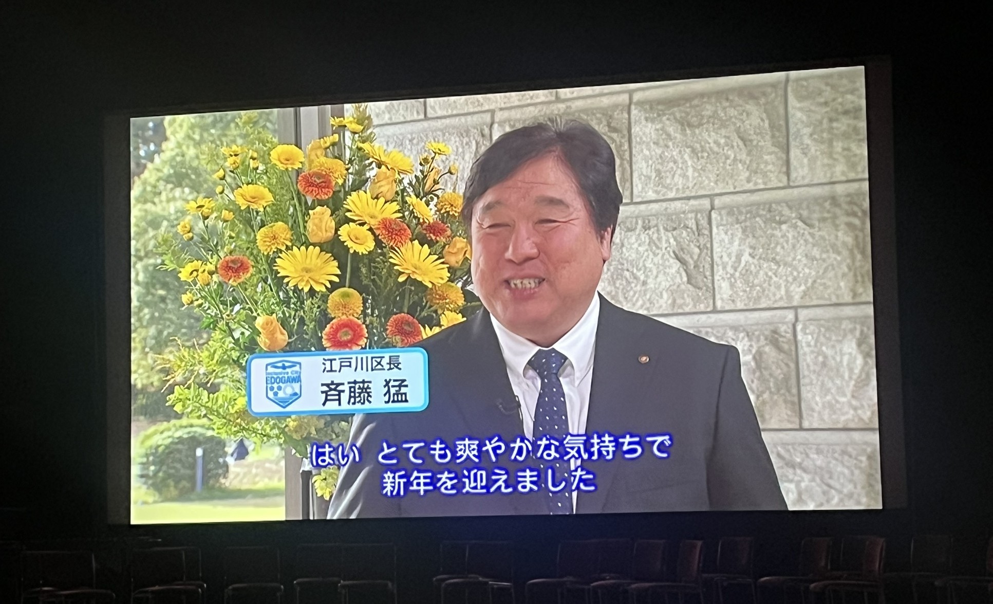 冒頭、広報ビデオ「夢と希望に満ちた明るい将来に向けて~令和8年 新春区長インタビュー~」が上映されました。