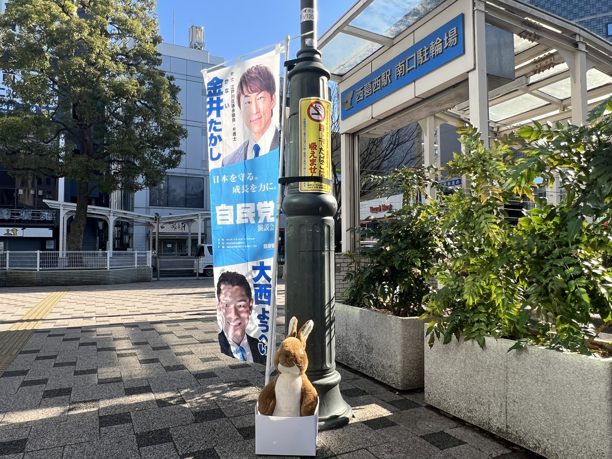 西葛西駅南口ロータリーでは、「Xを見ていてフォローしています」また「応援しています」とお声掛けをしてくださった方、そして、ウサギのぬいぐるみを撫でくださり、冗談で「生きてる!」と笑って言ってくださった方がいました。