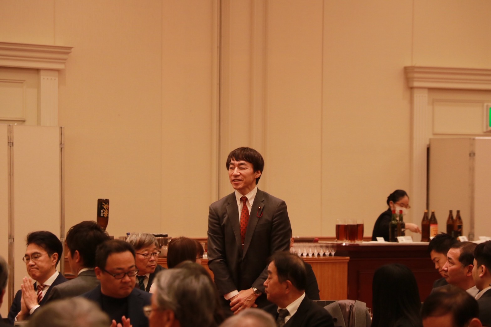 その後、斉藤猛区長から、公園などの江戸川区の魅力や、一之江駅などの開設40周年などの話題が共有されました。また、大西洋平衆議院議員、宇田川さとし都議会議員、そして区議会を代表して福本みつひろ議員から祝辞が述べられました。