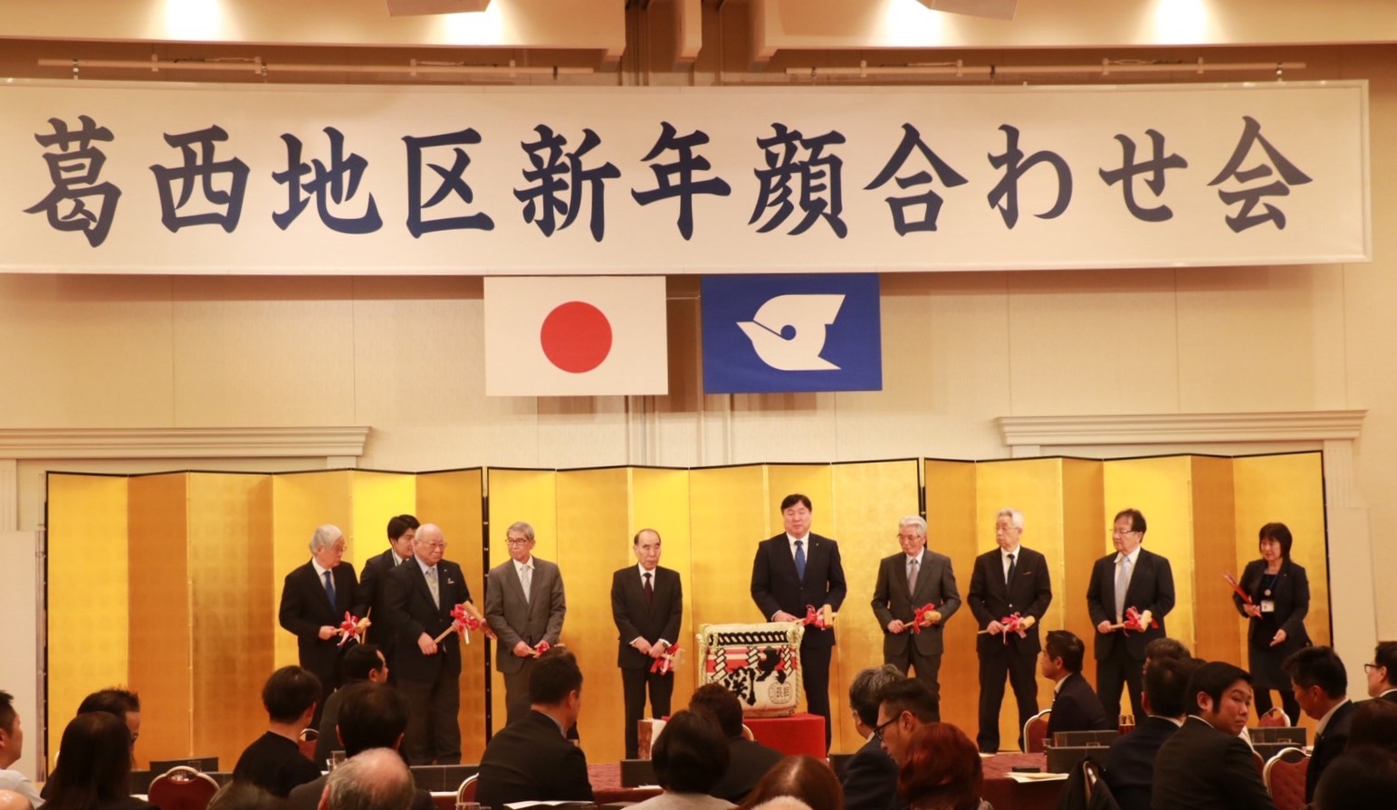 本年は400名を超える地域関係者が一堂に会し、新春を祝うとともに葛西地区のさらなる発展を誓い合う大変活気ある会となりました。