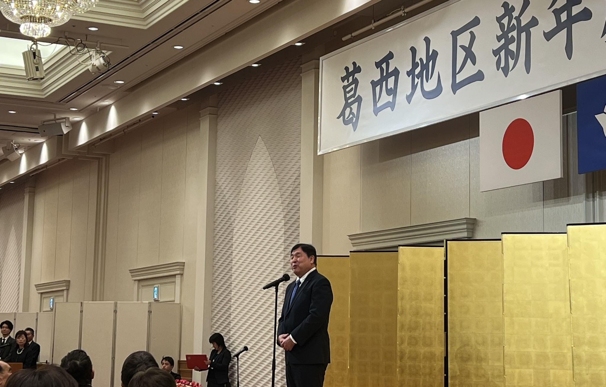 令和8年・2026年1月8日、タワーホール船堀において、葛西地区自治会連合会による令和8年「葛西地区新年顔合わせ会」が開催されました。昨年に引き続き、私も江戸川区議会議員として出席させていただきました。