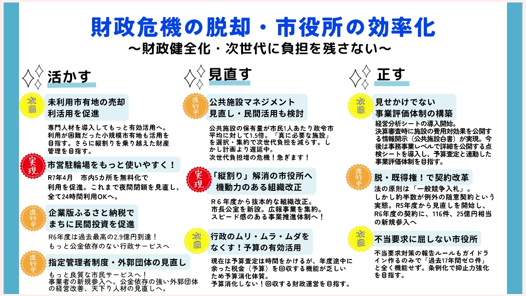 ホーム>政党・政治家>井上 じゅんこ (イノウエ ジュンコ)>【北九州市議選2025】井上じゅんこの政策方針紹介❹〈財政健全化と市役所の効率化〉