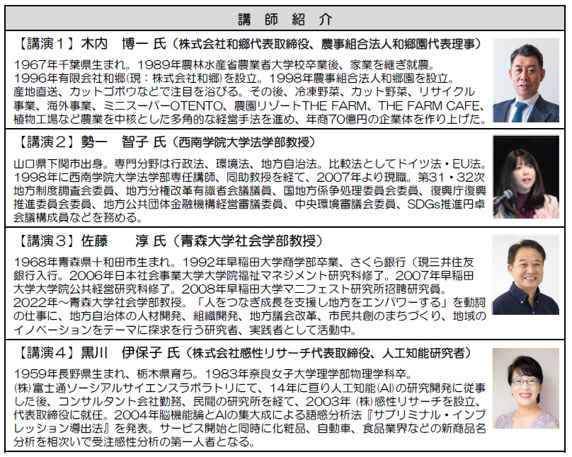 ・6次産業をベースに、海外事業(農産物現地開発)、公園指定管理等も行い、講師の「動き」「変化」という言葉が印象に残った。