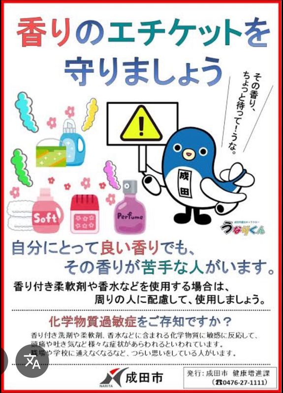 だからこそ、今回の戸田市議会の一般質問では、「香りを楽しむ人」と「香りで体調を崩す人」の双方を尊重しながら、「公共の場においては、少し配慮を広げる」という「香りのエチケット」について、まずは多くの方々に知っていただき、互いに尊重し合うという共生の視点から、みなさんと一緒に考えていきたいと考えています。