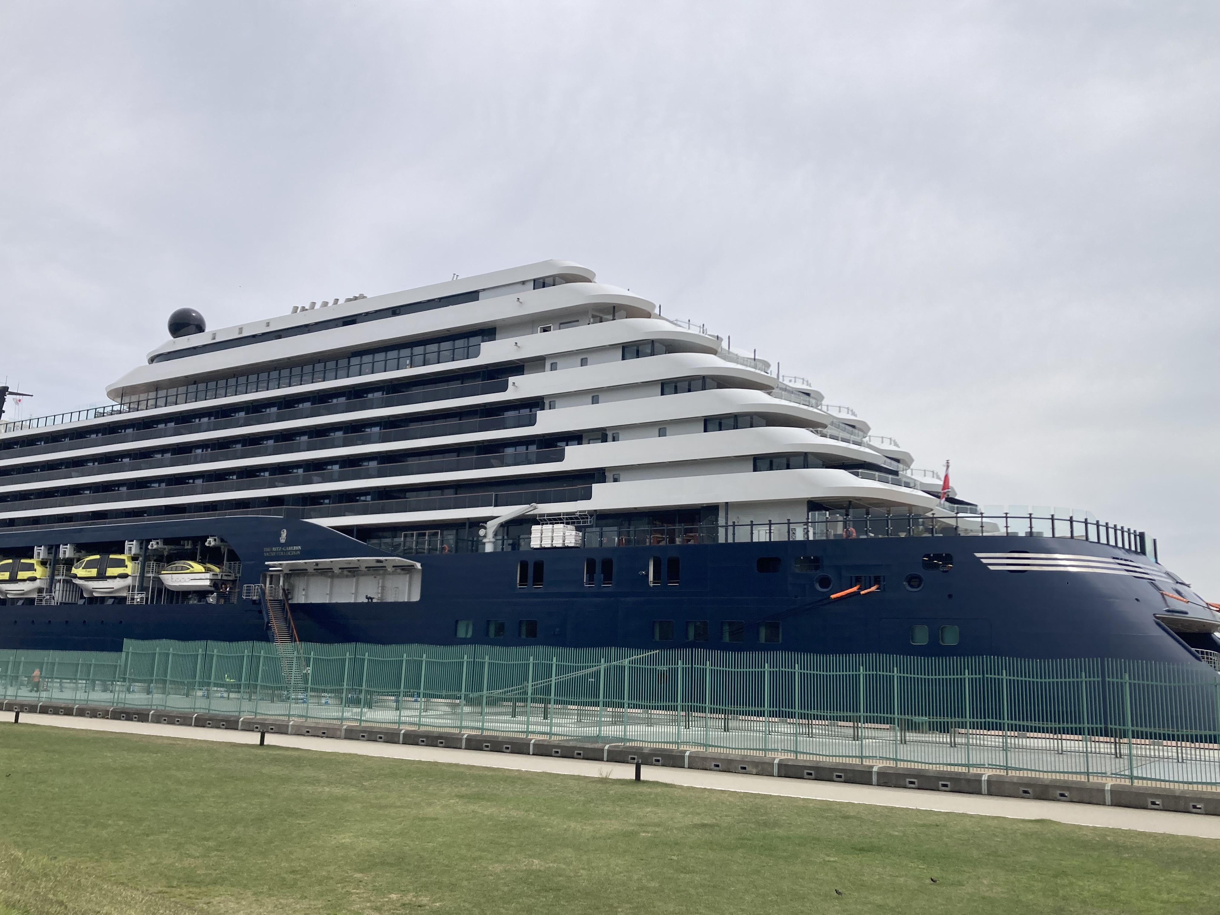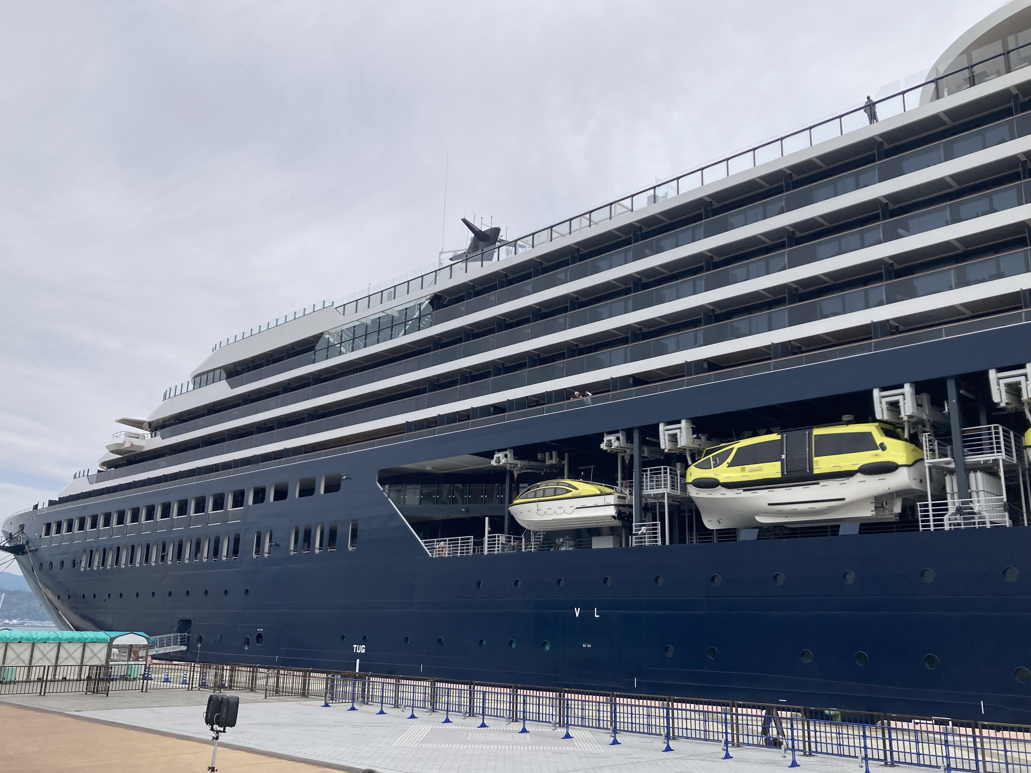 ルミナラ号の運行会社は、ザ・リッツ・カールトンヨットコレクションで、本船はラグジュアリークラスのようです。日本国内の航路は、石垣→那覇→奄美大島→鹿児島→神戸→清水→東京で、今日は富士山が見え隠れしましたが、船長は清水港が美しい港だと言われていました。